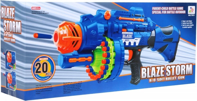Blasteren BLAZE STORM giver hurtig og jævn skydning takket være den elektriske halvautomatiske mekanisme. Tromlemagasinet rummer op til 20 pile, og i pakken finder du hele 40 stk., så underholdningen kan vare længe. Takket være det ergonomiske håndtag og den holdbare plastkonstruktion er den ideel til udendørs lege og indendørs dueller.