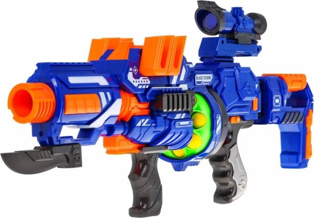 Leder du efter actionfyldt underholdning til haven og indendørs? BLAZE STORM i moderne blå‑orange design er let, robust og klar til lange kampe med venner. Den fuldautomatiske batteridrevne mekanisme giver jævne skudsalver, mens tromlemagasinet sørger for hurtig indlæsning og driftssikkerhed.