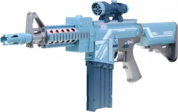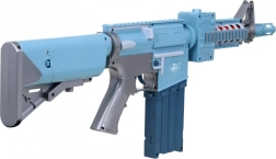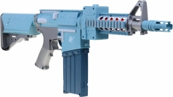 Den elektriske kompressor drevet af 5× AA-batterier (medfølger ikke) giver jævn, fuldautomatisk skydning – tryk blot på aftrækkeren, og hvert tryk affyrer ét skud. For børns sikkerhed kan aftrækkeren låses med ON/OFF-kontakten. Det lange løb med styrevalse stabiliserer skuddet for større præcision.
