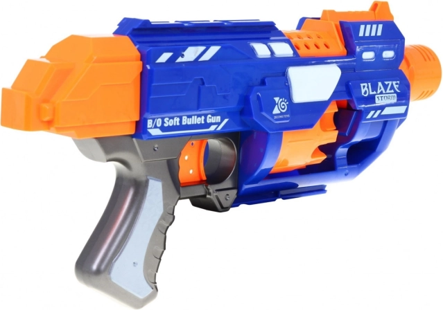 Oplev actionfyldt sjov med børneblasteren BLAZE STORM. Den halvautomatiske mekanisme muliggør hurtig og jævn affyring af sikre skumkugler, mens den ergonomiske udformning sikrer et behageligt greb. Ideel til søskendekampe og præcisionstræning.