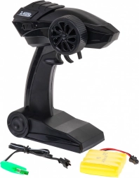 Pakken indeholder alt, hvad du skal bruge for at komme i gang: bil, fjernbetjening, genopladeligt batteri 4,8 V 700 mAh og USB-opladningskabel. Opladning tager cirka 90 minutter og giver omkring 20 minutters actionfyldt kørsel.