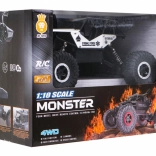 RC Crawler Monster er det ideelle valg for både små og større offroad-entusiaster fra 6 år. Den robuste ramme, slagfaste design og firehjulstræk giver fremragende greb og stabilitet på grus, græs og ujævnt underlag. Den ergonomiske controller med 2,4 GHz-teknologi muliggør styring uden forstyrrelser på op til cirka 40 meter.