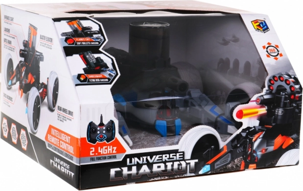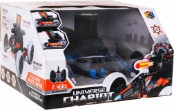 Oplev actionfyldt sjov med denne terrængående RC crawler med skydning til børn fra 5 år. Køretøjet styres på 2,4 GHz, kører i alle retninger, har et 360° roterende tårn, lasersigte til præcis sigtning og et magasin til op til 50 kugler. Takket være de store gummihjul og affjedring klarer den ujævnt terræn. Der er lys- og lydeffekter og en træfsensor – efter tre træffere “slukker” køretøjet, og kampen kan starte forfra.
