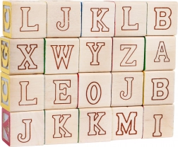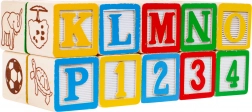 Sættet indeholder 20 træklodser med bogstaver og billeder, der hjælper børn med at lære alfabetet og udvikle kreativitet.