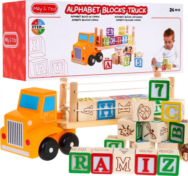 Oplev magien ved leg med trælastbil og alfabetklodser. Dette sæt kombinerer leg og læring i ét og er ideelt for små børn, der lærer alfabetet gennem leg.