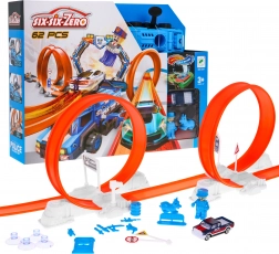 Actionfyldt politiracerbane til små kørere byder på 2 gigantiske 360°-loops, en kraftig affyrer og en lille bil, der skifter farve ved kontakt med vand. Sættet med 62 dele er let at samle, kræver ingen batterier og udvikler kreativitet, finmotorik og konkurrenceånd. I pakken finder du også et stort politiets lastvognssæt med affyrer, en figur, en hund samt skilte og trafiklys – den ideelle leg for børn fra 3 år.