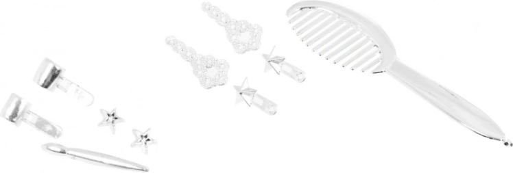 I pakken finder du en kam, en dekorativ hårelastik og spænder – alt til smukke og holdbare frisurer hver dag.