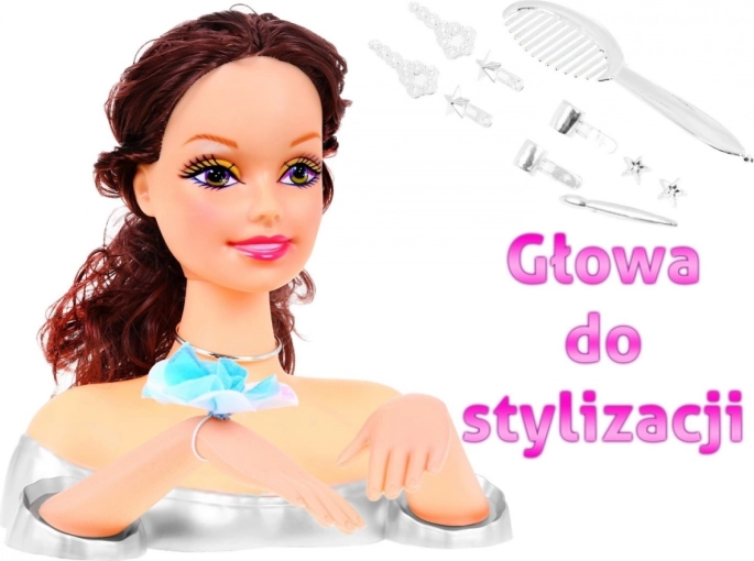 Oplev sjov med et stylinghoved med langt brunt hår. Børn kan øve børstning, fletning og pyntning af håret med det medfølgende tilbehør. Legen støtter kreativitet, finmotorik og fantasi.