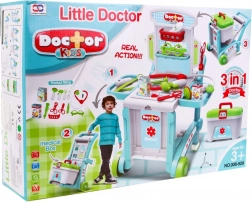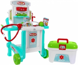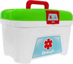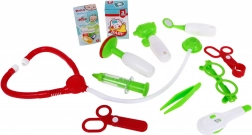 Sættet indeholder alt, hvad den lille læge har brug for: stetoskop, briller, to sakse (herunder med afrundet spids), pincet, sprøjte, termometer, æske med plastre og kompresser, undersøgelsesspejl, undersøgelsesadapter, reflekshammer og klistermærker. Legen hjælper med at mindske lægeskræk, udvikler sociale færdigheder og stimulerer fantasien.
