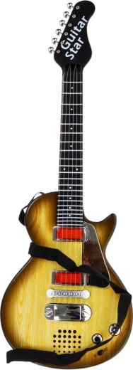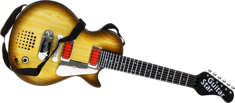 Denne stilfulde børneguitar i træinspireret design er det ideelle valg til små musikere. Takket være de kompakte mål passer den perfekt til børn fra 3 år og motiverer dem til at udforske rytme og kreativitet. Guitarens seks metalstrenge giver lyd ved berøring, og den har to tilstande – afspilning af rock-backing og spil på strengene.