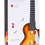 • Realistisk spillefornemmelse: 6 metalstrenge og krop med træmotiv.