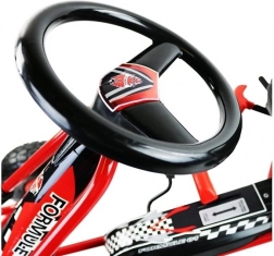 Denne pedalgokart A-15 forvandler hver tur til et racereventyr. Den robuste ramme, det sportslige design og det komfortable formede sæde med hurtig positionsjustering sikrer en perfekt siddeposition – også til børn i vækst. Kørslen lettes af automatisk friløb med mulighed for kørsel frem og tilbage samt præcis styring med sportsrat.