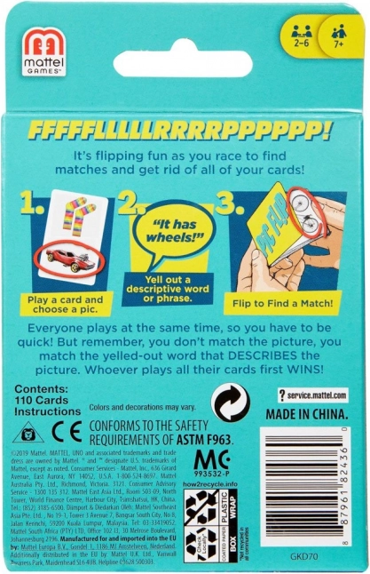 Oplev hurtig familieunderholdning med spillet Pic Flip! I dette logiske kortspil for 2–6 spillere fra 7 år gælder det om lynhurtigt at finde billedet efter det sagte nøgleord og blive den første til at slippe af med alle dine kort. Alle spiller samtidig, så hastighed, iagttagelsesevne og associationer afgør det hele. Ideelt til rejser takket være den kompakte æske og op til 110 kort for uendelig sjov.