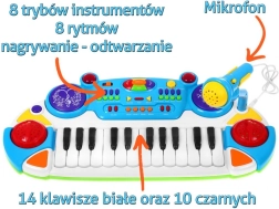 Blåt musiksæt Keyboard + Trommer + Mikrofon til børn 3+ Lys + Lyde 2 oktaver