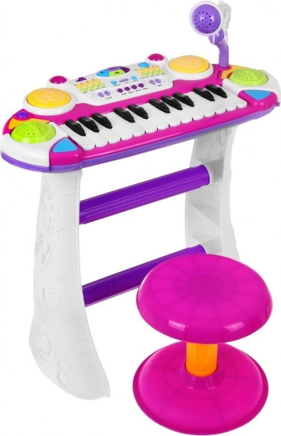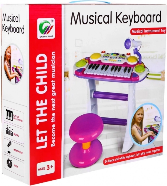 Dette rosa sæt med keyboard, trommer og mikrofon er den ideelle gave til børn fra 3 år. Det indeholder to oktaver, lys og lyde, hvilket giver børn en uforglemmelig musik- og underholdningsoplevelse.