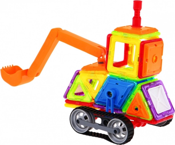 Magiske magnetiske byggesæt er det ideelle valg for børn fra tre år. Dette sæt med 78 dele er farverigt og omfatter 29 magnetiske dele, der frit kan kombineres med plastdele. Sættet indeholder funktionelle hjul og gravearm, hvilket gør det muligt at sammensætte modeller af byggemaskiner. En visuel vejledning inspirerer børn til kreativt byggeri.