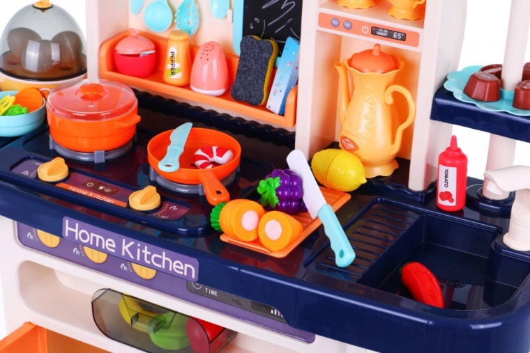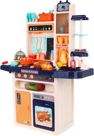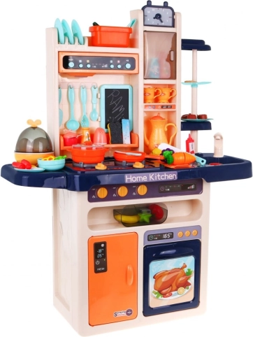 Børnekøkken med vandhane og dampbrænder, lydpanel, 65 dele – Blå