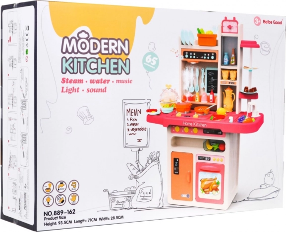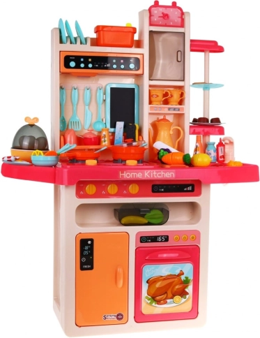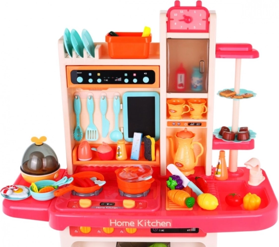 Børnekøkken med vandhane og dampbrænder, lydpanel, 65 dele – Rosa