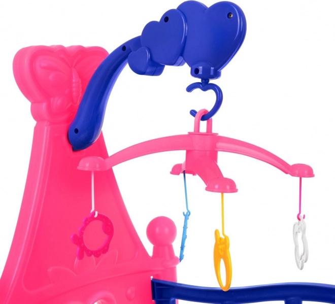 Den roterende karrusel med hængende legetøj fanger opmærksomheden og beriger omsorgslegen med dukken.