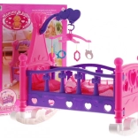 - Komplet udstyr: vugge/dukkeseng 2-i-1, karrusel med lyde, pude, dyne.