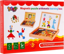 Den praktiske trækasse fungerer som opbevaring til alt tilbehør, og på undersiden finder du en gangetabel til hurtig kontrol af resultater. Med de medfølgende kort og vejledninger kan børn lægge billeder af magnetiske former og dermed udvikle kreativitet og finmotorik.