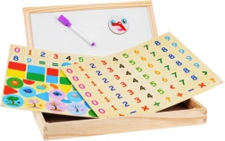 Opdag sjov læring med denne træ-magnettavle til børn fra 3 år. Det veludstyrede pædagogiske sæt udvikler logik, kreativitet og finmotorik. Med magnetiske kort med tal og tegn, figurer, piktogrammer for vejr og årstider samt magnetisk ur kan børn legende øve sig i at regne, lære tiden og genkende former. Sættet indeholder en dobbeltsidet magnettavle, en tørløselig tusch og træ-tællestave til let og varig læring gennem leg.