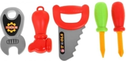 Omfatter forskellige redskaber som nøgle, hammer, sav og skruetrækkere. Hver del er i levende farver for endnu mere sjov.
