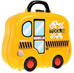 En praktisk kuffert, der gør det nemt for børn at opbevare og flytte værktøjssættet. Den er let og nem at bære med design som en skolebus.