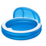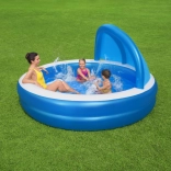 Solskærmen beskytter mod solstråling og sikrer, at børn kan lege trygt i poolen.