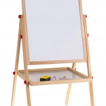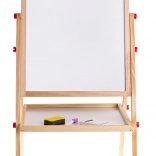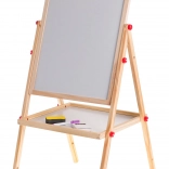 Denne stabile træ-tavle kombinerer kreativ tegning med smart læring. Den hvide side er magnetisk til at skrive med tør-slet-tusch og arbejde med magneter, den sorte side er velegnet til klassisk tegning med kridt. Takket være den justerbare højde tilpasses den nemt til børn i forskellige aldre og vokser med dem.