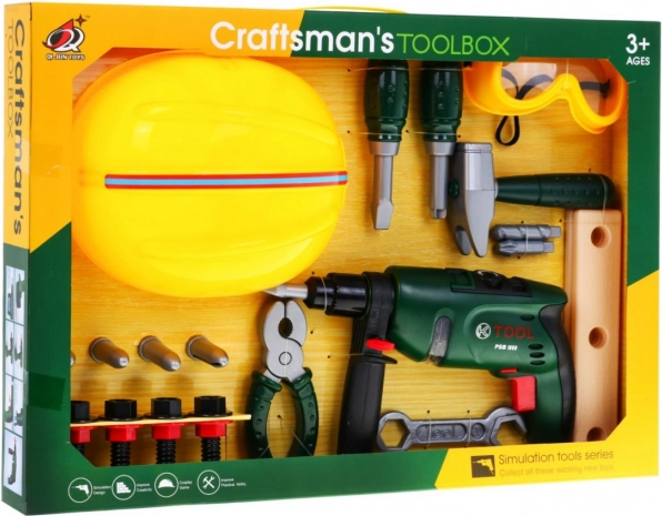 | | Gør-det-selv-sæt med boremaskine, briller, hjelm og værktøj er velegnet til børn fra 3 år. Legetøjet påvirker logisk tænkning positivt, stimulerer kreativitet og understøtter hånd-øje-koordination. Skruetrækkeren drives af 2 x AA 1,5 V batterier – medfølger ikke. |