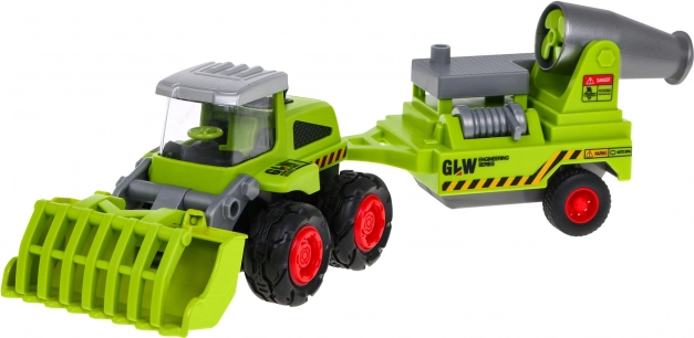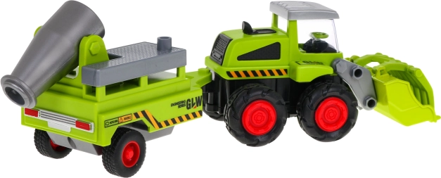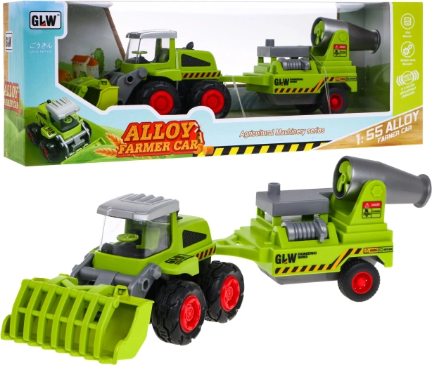 Metal landbrugslæsser med trailer er det ideelle legetøj for små landmænd fra tre år og opefter. Legetøjet har en bevægelig metalskovl og en aftagelig trailer med sprøjte, gummihjul og bagakseldrev.
