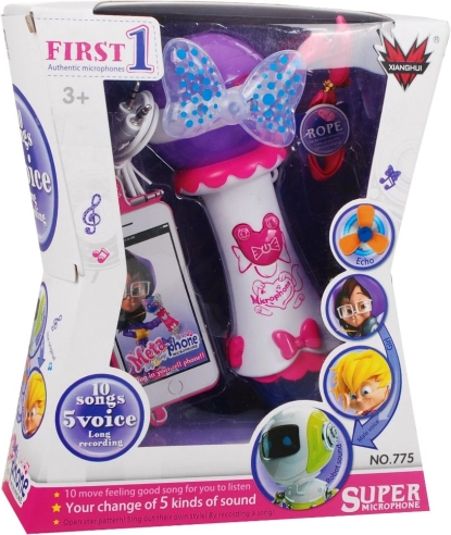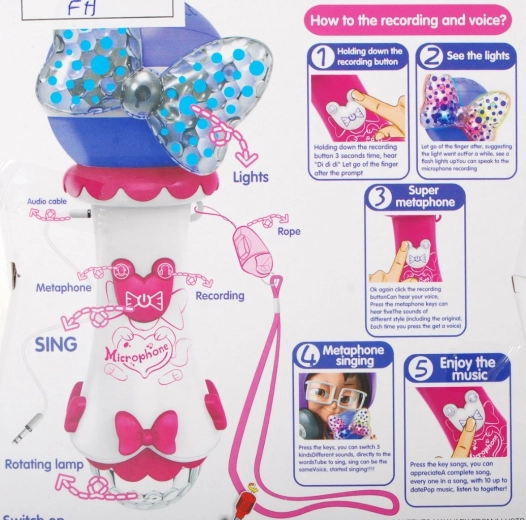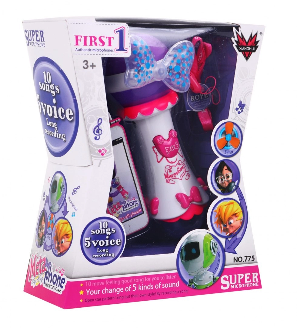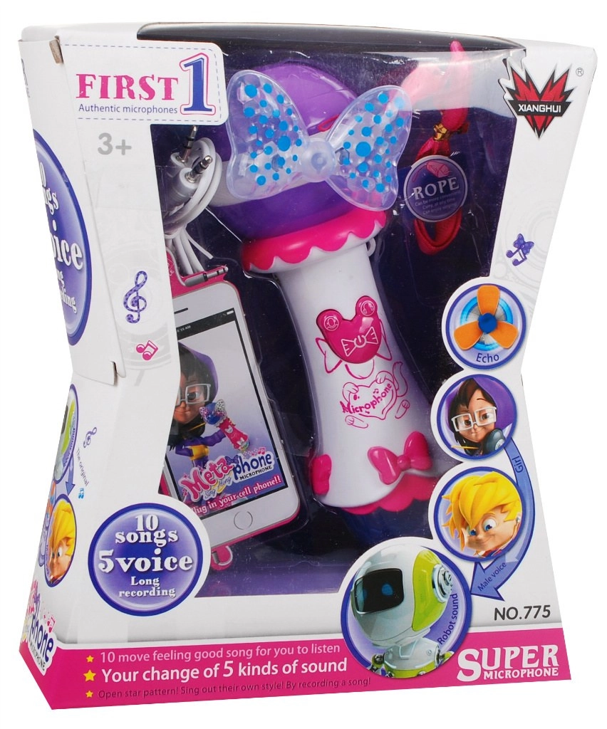 Denne børnemikrofon lyser enhver optræden op. Den har en stor højttaler for klar lyd, to markante LED-dioder (sløjfe og stor kugle), som udsender farverige lyseffekter, samt 10 indbyggede melodier til øjeblikkelig sjov. Med funktionen optagelse og afspilning kan børn gemme deres musikalske øjeblikke.