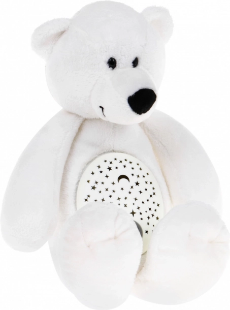 Denne interaktive bamse skaber en beroligende atmosfære for lettere indsovning. Projektoren i maven projicerer en blid stjernehimmel på loft og vægge i farverne rød, blå, grøn og lilla, som fanger barnets opmærksomhed og samtidig virker beroligende. Den bløde, behagelige plys er sikker for spædbørn og indbyder til kram.