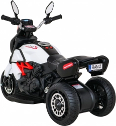 Den stilfulde batteridrevne børnemotorcykel FAST TOURIST tilbyder sikker kørsel på tre hjul, realistiske lys og rigelige lydfunktioner (horn, melodier, SD, AUX, USB). Takket være det bløde sæde i økolæder og gummibaner på hjulene giver den både komfort og stabilitet til små førere.