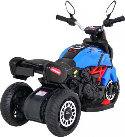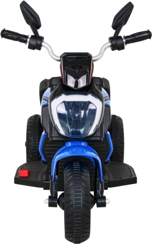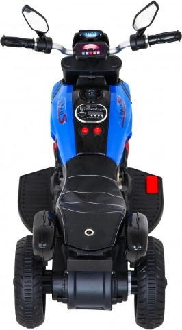 Små ryttere vil sætte pris på det komfortable sæde i økoskind og realistiske detaljer som forlygter, spejle og lydeffekter. Det integrerede lydpanel gør det muligt at afspille yndlingsmelodier via USB, SD og AUX. Motorcyklen er et glimrende valg til at udvikle børns motorik og balance.