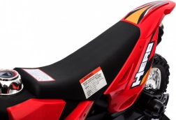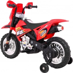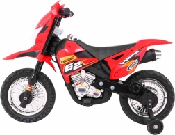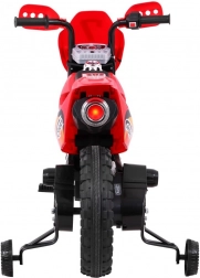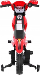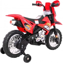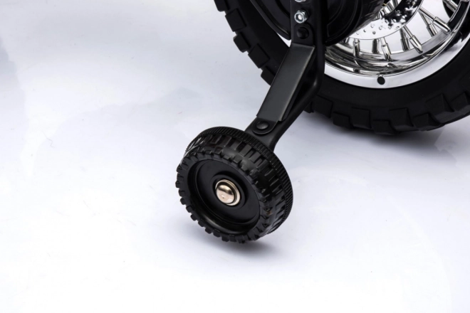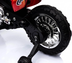 Denne elektriske motorcykel til børn er et ideelt valg til de første køreoplevelser. Den robuste plastkonstruktion med gummibane på hjulene sikrer stabilitet og støjsvag kørsel, mens støttehjulene hjælper balancen og giver selvtillid til begyndere. Det forreste LED-lys øger synligheden og giver et attraktivt udseende.