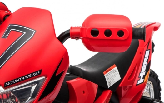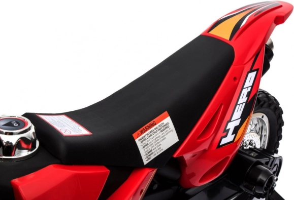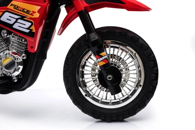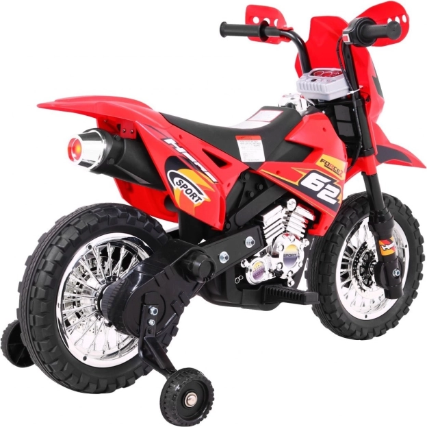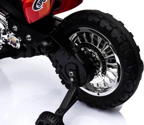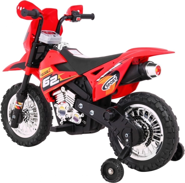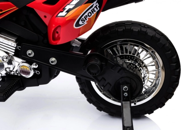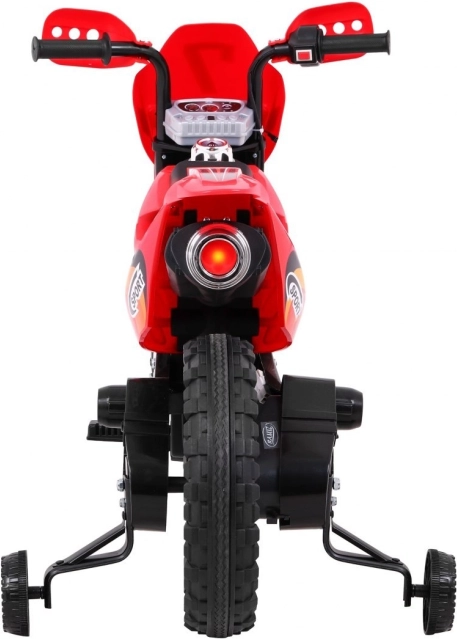 En stilfuld batteridrevet crossmotorcykel til børn i en iøjnefaldende rød farve, som giver de små førere sikker underholdning både inde og ude. Den har en 6V RS-390 motor, gummibane på hjulene for bedre vejgreb, forreste LED-lys og støttehjul for ekstra tryghed på de første ture. Intuitiv gashåndtag i styret og et audiopanel med lyde og melodier sørger for en realistisk oplevelse.