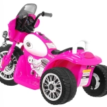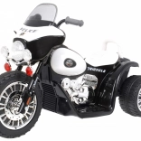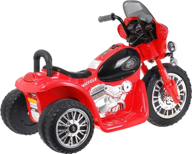 Stilfuld elektrisk børne-chopper med tre hjul giver stabil kørsel, LED-lys aktiveret under kørsel og sjove lydeffekter (horn, melodier). Takket være 20 W motor, 6 V/4,5 Ah batteri og det komfortable sæde er den ideel til de første køreoplevelser for små førere.