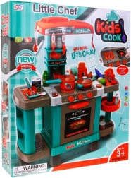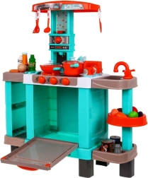 Oplev sjove og lærerige stunder med dette børnekøkken, der simulerer et virkeligt køkkenmiljø. Køkkenet har lydfunktioner til afspilning af madlavnings- og stegelyde samt lyseffekter på en af kogepladerne. Børn kan justere lydstyrken på den “induktionskogeplade”.