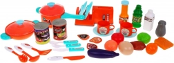 Køkkenet leveres med masser af tilbehør, herunder gryder, pander, tallerkener og forskellige imitationer af madvarer, så børn kan skabe deres egne historier og situationer.