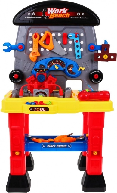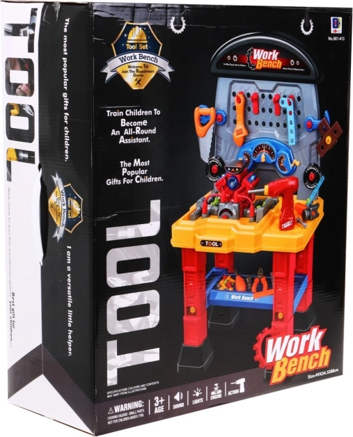 Børneværksted med motor tilbyder en bred vifte af værktøjer, der perfekt udvikler dine børns manuelle færdigheder, fantasi og kreativitet. Sættet indeholder en batteridrevet motor med realistiske lyde og lyseffekter, der vil fascinere hver lille entusiast.