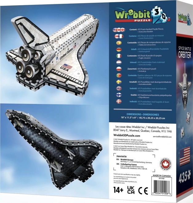 Oplev glæden ved at bygge en tredimensionel model af en rumfærge, der trofast kopierer den virkelige Orbiter – den eneste del af rumfærgen, som når kredsløb og lander sikkert tilbage på Jorden. WREBBIT 3D‑puslespil giver en afbalanceret udfordring og underholdning takket være ikke‑nummererede brikker og tydelige referencebilleder.