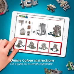 Skab derhjemme en imponerende model af Camelot med tårne, kreneleringer og flag. Takket være specialmateriale og præcis formning af brikkerne holder modellen solidt uden behov for lim eller værktøj. Samlingen foregår efter overskuelige referencebilleder og en sort-hvid illustreret vejledning.