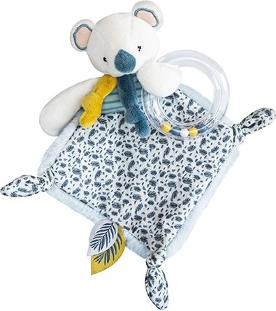 Dette smukke gavesæt indeholder plyskonallen Yoca, som er den ideelle ledsager for babyen fra fødslen. Den giver tryghed og komfort takket være det bløde materiale. Ranglen med perler inde i ringen giver stimulering og sjov for de allermindste.