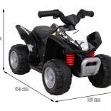 Giv børn deres første køreoplevelser med en kompakt elektrisk ATV på 6 V. Motoren 1×30 W giver jævn fremdrift, den lave vægt gør den let at styre og manøvrere sikkert. Forreste LED-lygter og horn øger både sjov og synlighed.