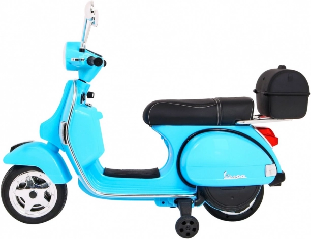 Lille rytter, stor stil. Denne elektriske børnescooter i VESPA-stil begejstrer med realistiske detaljer, for- og baglys samt en praktisk bagboks til småting. Takket være blød opstart og to hastigheder lærer barnet at køre gradvist og sikkert.