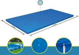 Dækket er designet til at beskytte din rektangulære pool med en ramme på 300 x 201 cm. Specielle afløbshuller på dækket forhindrer vandophobning. Takket være integrerede stropper kan dækket nemt og sikkert fastgøres til poolstrukturen.