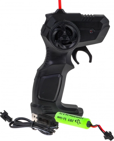 Fjernbetjeningen, inklusive genopladeligt batteri, gør styring og manøvrering af bilen nem.