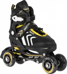 Dette alsidige 4-i-1 børnesæt kombinerer inline-skøjter, isskøjter og konfigurerbare hjulopsæt i én praktisk pakke. Det femtrins justerbare størrelsessystem (29–33) med indvendig længde 16,5–20 cm vokser med barnet. Den halvhårde konstruktion støtter anklen, mens åndbar membran og ventilation sikrer komfort på hver tur.